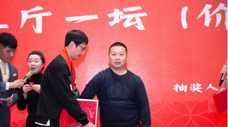 緊張的一等獎抽獎環(huán)節(jié)到來了,獎品是國臺三斤裝一壇的國臺酒,價值1099元。由鐘文先生、寧莎莎女士抽取,有四名幸運兒。